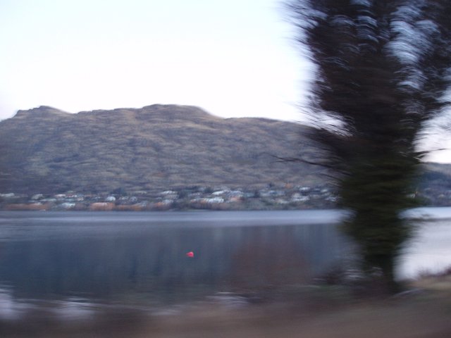 "motion blurred view towards the remarkables at dusk"