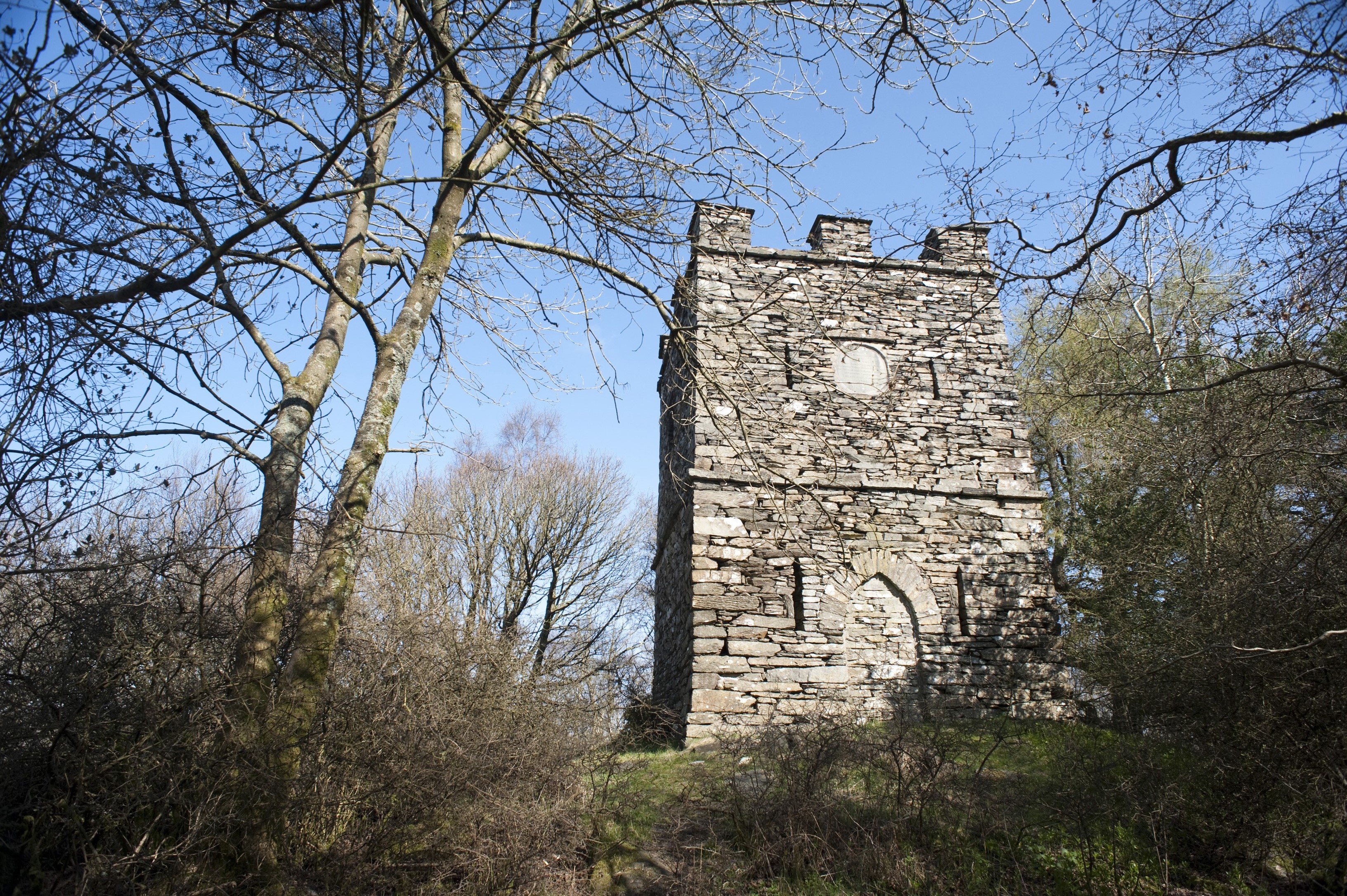 architecture building conversation piece crenellated folly forest historical square stone whimsical