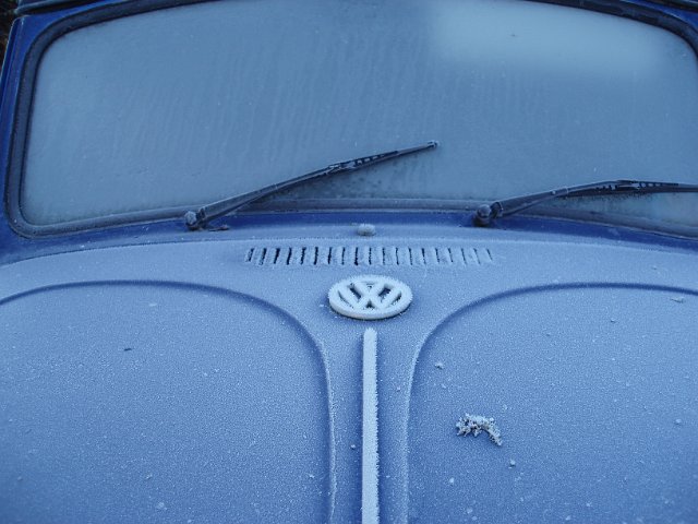 "frozen up bonnet and windscreen of a classic VW beetle"